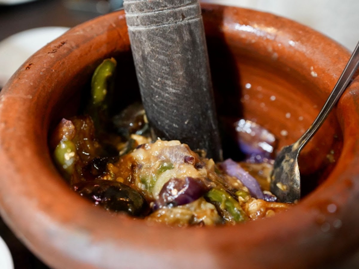 mashed eggplant green pepper and century egg 擂辣椒茄子皮蛋